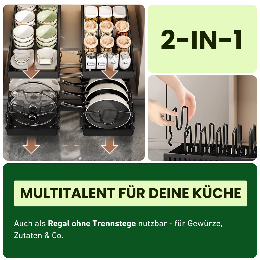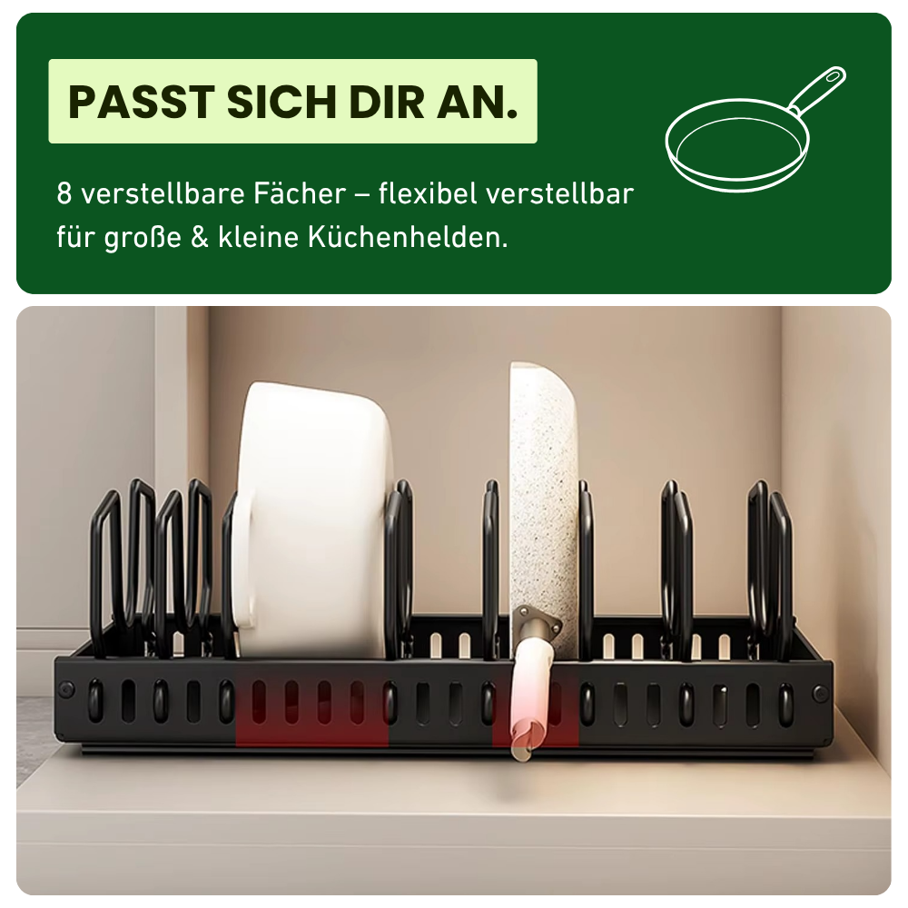 ✔️ 8 flexibel verstellbare Trennwände – passt sich deinen Töpfen & Pfannen an